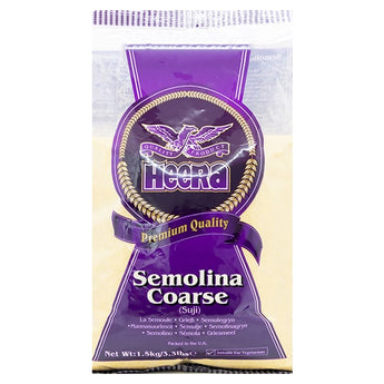 Heera Semolina Coarse (1.5kg) is a purified wheat that is typically used to make pizza, pasta and breakfast foods. In Asian cuisine it is used to make sweet and savoury dishes.