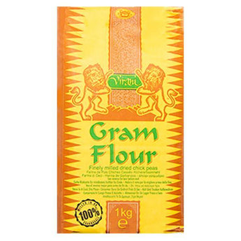 Finely milled dried chick peas. Sometimes known as chick pea flour, Virgani gram flour is finely milled from Channa Dall, a variety of chick peas, and is essential in Indian cuisine when cooking bhajees, pakoras and many traditional sweets.