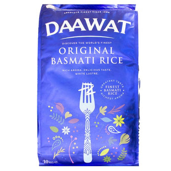 Daawat Original Basmati Rice (1kg),(2kg),(5kg),(10kg), Rich aroma, delicious taste from the finest basmati rice. Once cooked, each rice grain forms a fluffy texture.