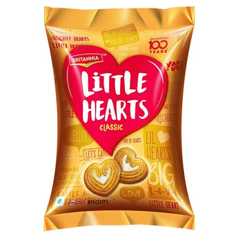 Britannia Little Hearts (75g). There is hardly anyone who doesn’t recognize and adore the iconic heart-shaped poppable biscuits and its trademark gold and red packs. So, if you’re looking for some fun and memorable times, just grab a pack of the delicious Britannia Little Hearts, and let its sugar sprinkled goodness leave you with an delightful aftertaste.