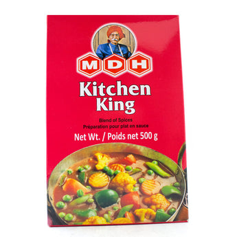 MDH Kitchen King (500g), is a premium blend of Indian spices. It is an essential ingredient for all your culinary needs. It's packed with vibrant flavours, aromatic ingredients, and unique kitchen-friendly spices for a delicious flavour-packed taste. Plus, it's easy to use and a great way to make your meals extraordinary.