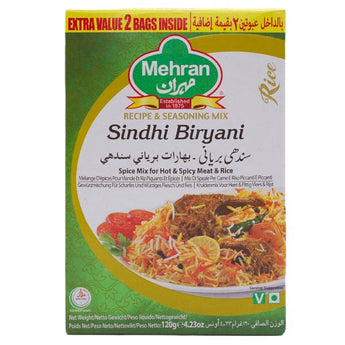 Mehran Sindhi Biryani (120g), is Spice Mix for Hot & Spicy Meat & Rice flavoured, using the finest ingredients in exactly the right measure. It will enable you to cook delicious meals with ease that you and your loved ones can relish each day.