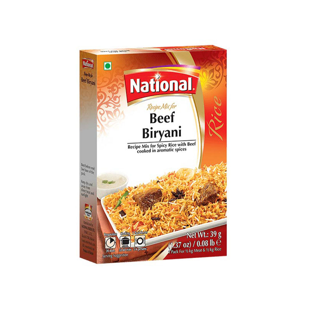 National Beef Biryani (39g), helps you in preparing your delicious Biryani at home with the authentic taste and aroma for an ultimate food experience. National Foods have been specially developed by a panel of experts, using the finest ingredients in exactly the right measure, enabling you to cook delicious traditional meals with ease.