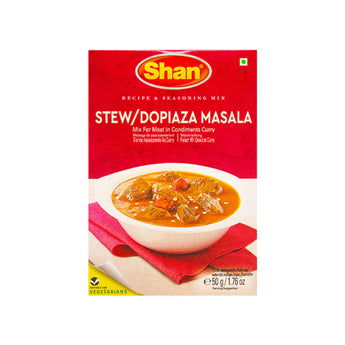 Expertly blend and enhance your stews and dopiaza dishes with Shan Stew/Dopiaza Masala. Made with a unique combination of high-quality spices, this 50g pack guarantees a rich and flavorful experience. Elevate your cooking and delight your taste buds with every bite.