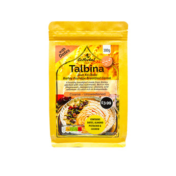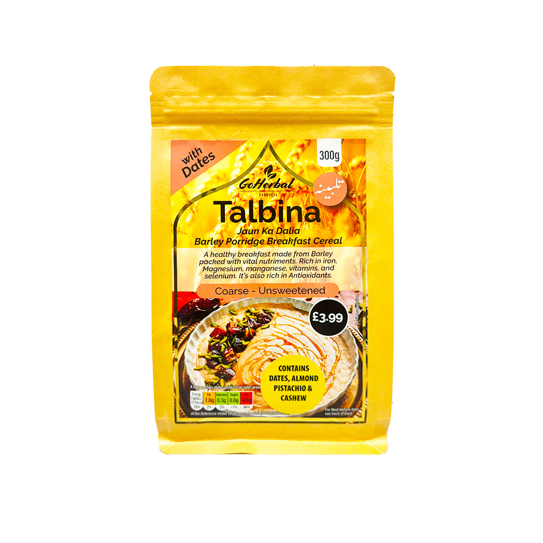 Go Herbal Talbina Coarse Unsweetened 300g is a traditional grain-based blend crafted with premium ingredients. This authentic formulation combines wholesome barley with nutrient-dense dates, almonds, pistachios, and cashews, delivering a rich source of natural fibre, protein, and essential minerals. The coarse texture provides a satisfying consistency, whilst the unsweetened composition allows you to control sweetness levels according to preference. Ideal for those seeking a nutritious, naturally-formulated wellness drink that honours traditional preparation methods without added sugars.