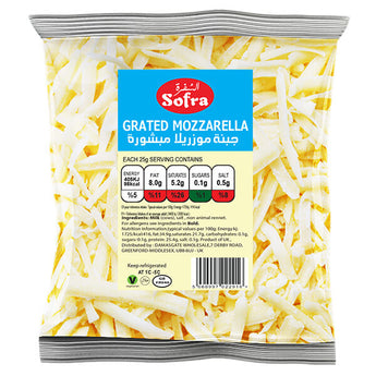 Sofra Grated Mozzarella Cheese (170g), is crafted from 100% pure mozzarella cheese with a slightly creamy texture and a savory flavor. With its convenient, pre-shredded form, it's easy to incorporate into all your favorite recipes, from lasagna to pizza to macaroni and cheese.