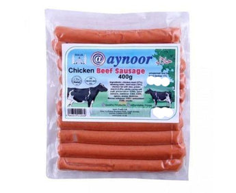 Aynoor Beef Sausages (400g). 100% Halal beef sausages. Perfect for sandwiches and appetisers, for all the family. Full of flavour and real meat.