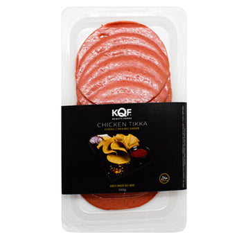 KQF Chicken Tikka Slices (100g). Gently spiced deli chicken meat is ideal for sandwiches.