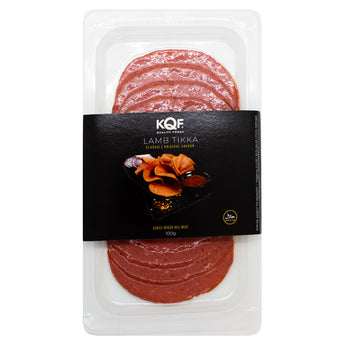 KQF Lamb Tikka Slices (100g). Classic, gently-sliced deli meat sandwich filler ready to go.