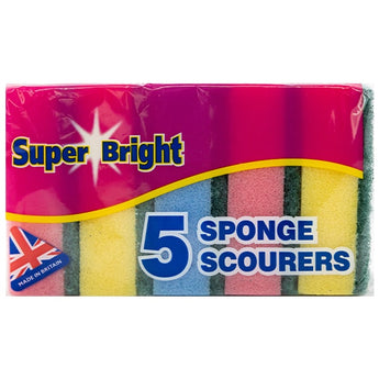 Super Bright Sponge Scourers (5 Pack)excellent for daily cleaning and perfect for use within the kitchen on kitchenware, utensils as well as surfaces.