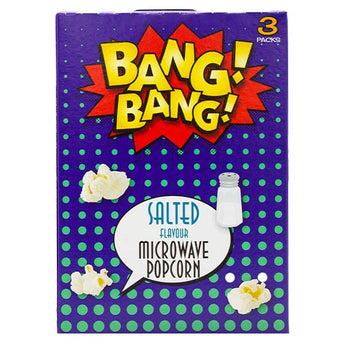 Bang Bang Salted Microwave Popcorn (3x85g), is a great choice for fun family movie nights. Salted popcorn with great taste and texture.