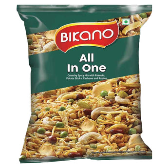 Bikano All In One (150g). Fried sweet and spicy mixture full of pulses, cereals, peanuts, dry fruits and potato sticks. Made with genuine ingredients since 1900's.