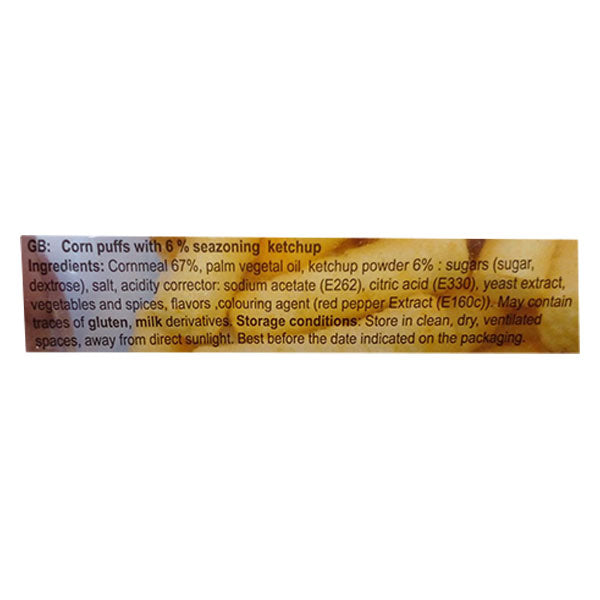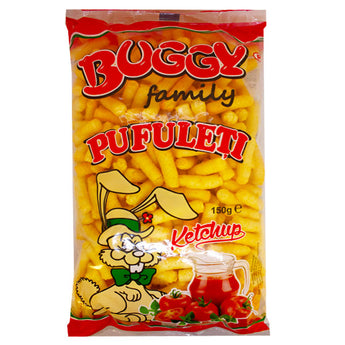 Discover the perfect snack with our Buggy Corn Puffs Ketchup 150g. Made with a tasty ketchup flavour, these puffs are sure to satisfy your cravings. Enjoy the crispiness and deliciousness of our corn puffs in every bite. A delicious and convenient snack for any occasion.