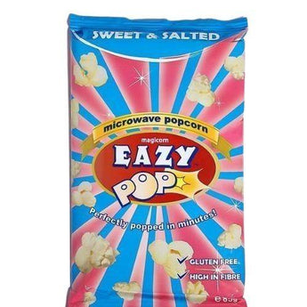 Eazy Pop sweet & salted is a delicious microwave popcorn that is easy to make. Perfectly popped in minutes!. Suitable for vegetarians.