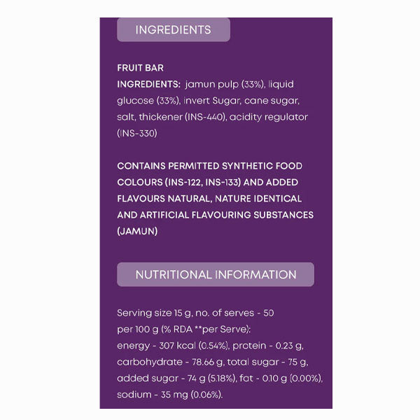 Indulge in the delicious and nutritious Mapro Falero Jamun Fruit Chews. Made with real jamun fruit, these chews are a rich source of antioxidants and have a unique sweet and tangy flavor. Each 175g pack is perfect for a quick and healthy snack.