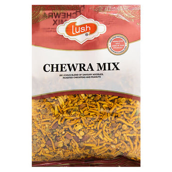 A Mixture Of Thin And Thick Noodles, Yellow Split Lentils, Green Lentils, Rice Puffs, Red And Green Chickpeas And Red Skin Peanuts.