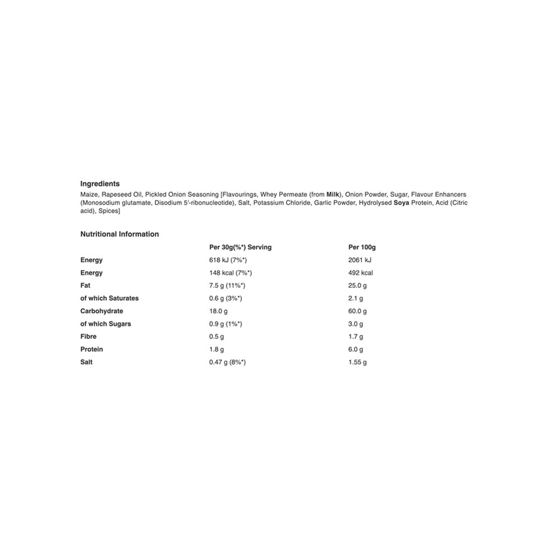 Walkers Monster Munch Pickled Onion delivers bold, tangy flavour in every bite. These iconic corn-based crisps are seasoned with a distinctive pickled onion coating that creates an intense, savoury taste experience. The light, airy texture makes them satisfying without being heavy, perfect for snacking throughout the day. At 72g, this convenient pack size is ideal for lunch boxes, on-the-go enjoyment, or sharing. A classic British snack that's been a favourite for generations, offering consistent quality and unmistakable flavour that pickled onion enthusiasts crave.