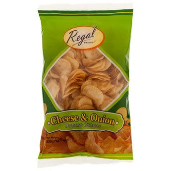 Regal Cheese & Onion (300g) are potato crisps with a classic cheese and onion flavour; ideal as a lunchtime snack.