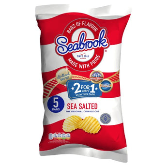 Seabrook Sea Salted Multipack (5pck) - 5x25g. Salty, tasty and crunchy. Oh unassuming sea salt – you’re a stalwart classic and so misunderstood. People often mistake no-frills for no-fun but anybody worth their...Well... Appreciates the value in less is more. Vinegar comes and goes, but sea salt is forever.