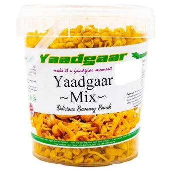 Yaadgaar Mix 350g. A mix of Savoury Noodles, Peas, Peanuts and Lentils make up this appetizing Yaadgaar mix box made from the finest quality ingredients.