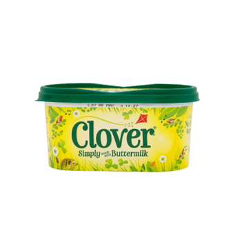 - This lovely tub of Clover is simply made with buttermilk, but has only half the saturated fat of butter and absolutely no artificial ingredients. Clover is the best tasting spread*, making it perfect to add flavour to your family meals: on toast at breakfast, spread on sandwiches in lunchboxes, melted over vegetables and potatoes and even in cakes.