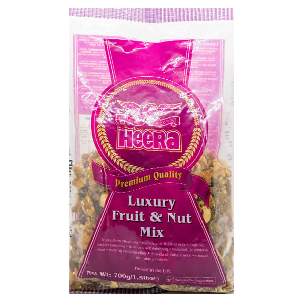 Heera Luxury Fruit & Nut Mix (250g and 700g) is a selection of premium quality nuts and fruits all mixed together into a pack ready for snacking and desserts. They do what is best, taking the sweetness and nutrition from the dried fruits and the nutty fibre-filled mix nuts to pack together a delicious mix.