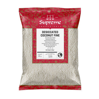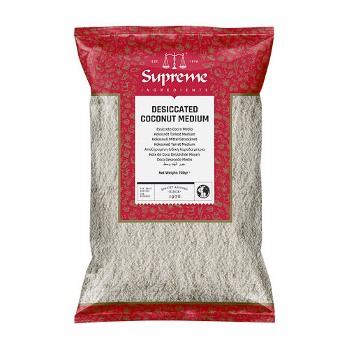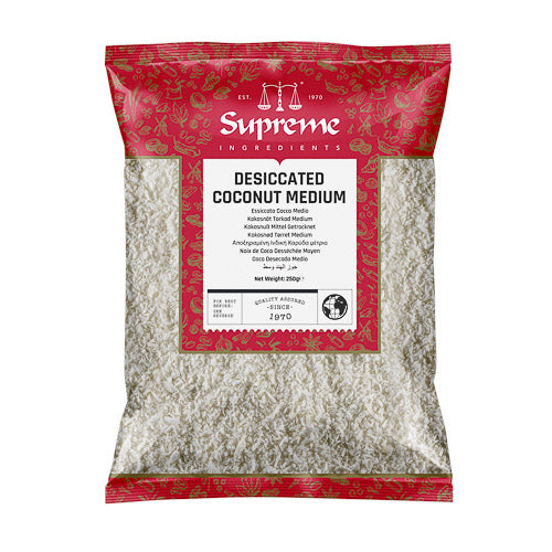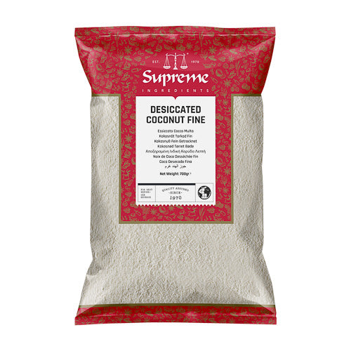 Supreme desiccated coconut (fine or medium) to be used as a topping on desserts such as chocolates and biscuits.