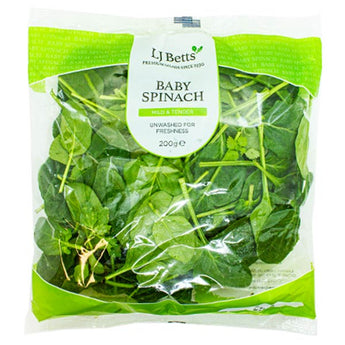 LJ Betts Baby Spinach (200g), Fresh spinach used for cooking or just to add as a delicious garnish.
