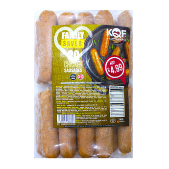 KQF 20 Chicken Sausages (1Kg), so they are ideal for a quick snack or a large family meal. Suitable for freezing and capable of being cooked straight from the freezer, they are very convenient, easy to prepare and sure to be a big hit with diners of all ages. Made from tender minced chicken, certified halal by the HMC.