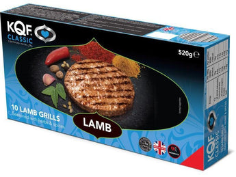 KQF Classic Lamb Grills (520g). Made from tender minced lamb, these certified halal KQF Classic Lamb Grills are flavoured with sage, onion, peppers and enough chilli to give them a moderate but not overpowering heat. Easy to cook and supplied in a convenient pack of 10, they are mouth-watering, versatile and always a great value.