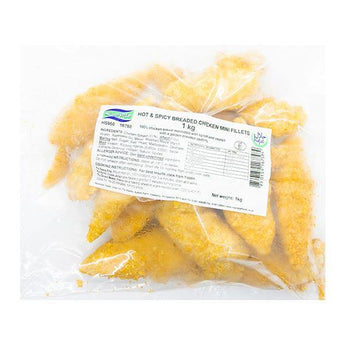 Riverside Spicy Breaded Chicken Mini Fillets (1kg). Tasty and ready to cook/fry.