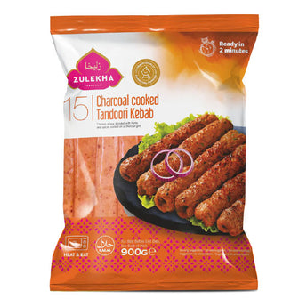 Indulge in Zulekha's 15 Chicken Charcoal Tandoori Kebab - a delicious blend of charcoal-grilled chicken and aromatic spices, packed into a convenient 900g pack. Perfect for any occasion, these kebabs are guaranteed to satisfy your cravings and leave you wanting more.