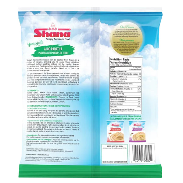 Experience the mouthwatering flavours of India with Shana Homestyle Aloo Paratha 4pk. Made with authentic spices and rolled in the perfect crispy dough, each paratha is filled with real potatoes for a satisfying meal. Conveniently packaged in a 4pk, enjoy an Indian homestyle meal in minutes.