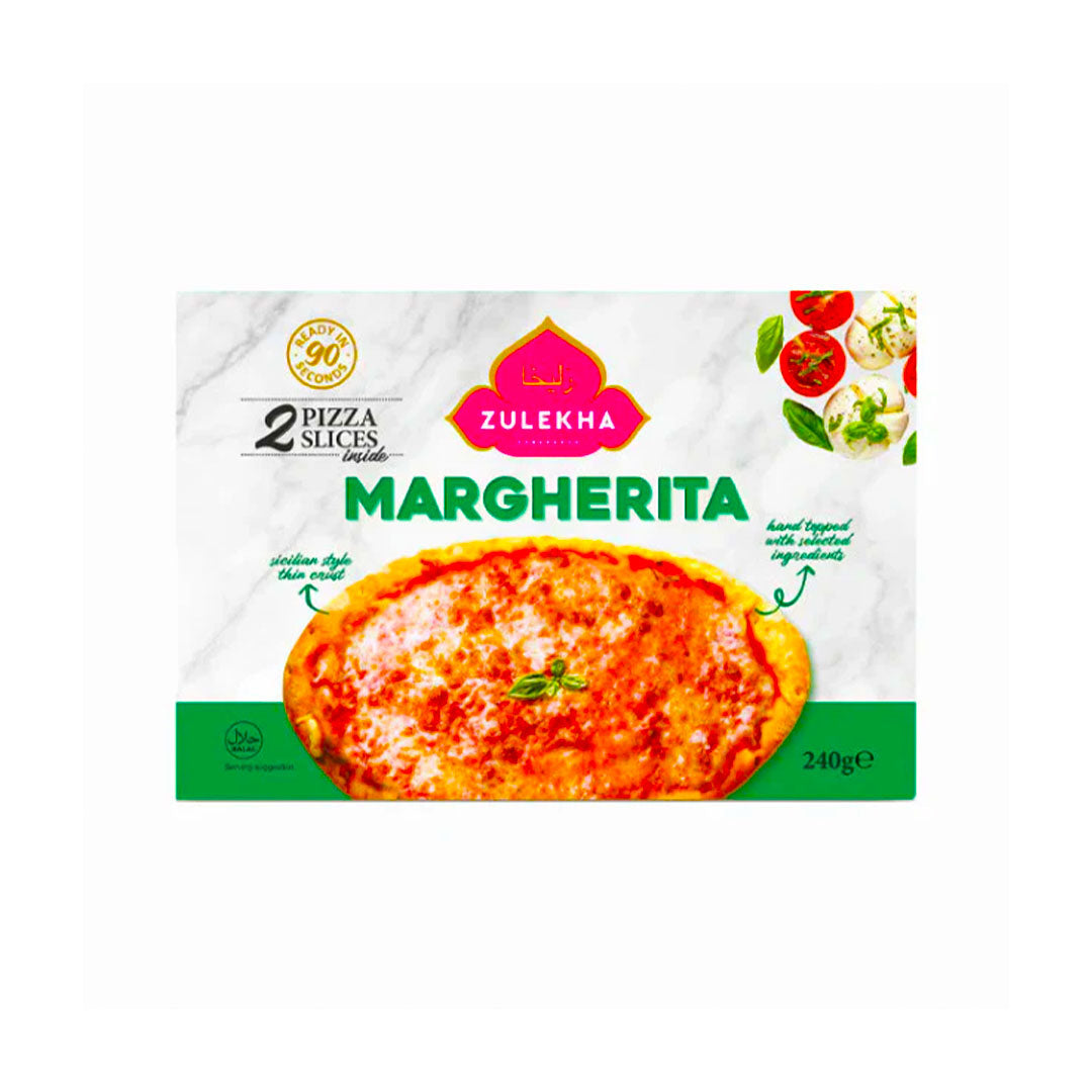 Zulekha's Margherita Pizza Slices deliver authentic Italian flavour in convenient frozen portions. Each 240g pack contains two generously sized slices featuring a crispy, golden crust topped with tangy tomato sauce, creamy mozzarella, and fresh basil. Perfect for quick meals, these slices reheat beautifully whilst maintaining their texture and taste. Ideal for busy households seeking restaurant-quality pizza without the preparation time. Simply oven-bake or microwave for a satisfying meal in minutes.