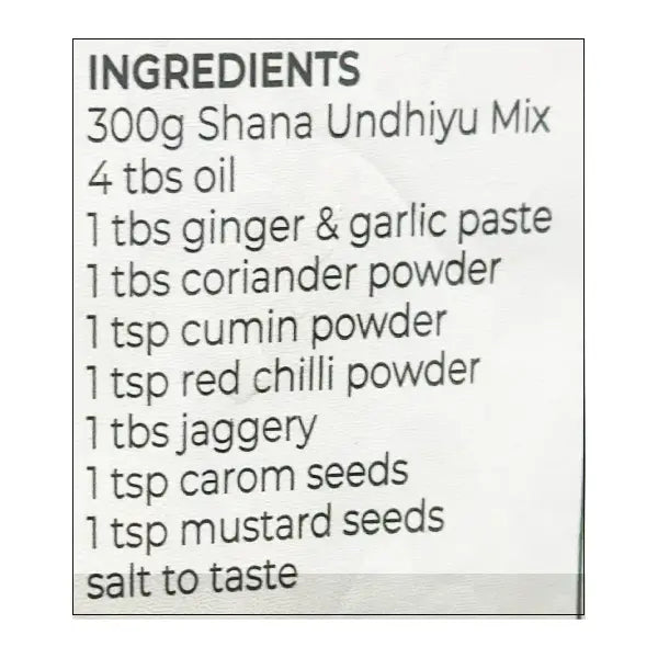 As an expert in the food industry, Shana presents their Undhiyu Mix, weighing 300g. This ready-to-cook mix contains all the necessary ingredients, allowing for easy preparation of the traditional Indian dish. Enjoy the rich flavors and authentic taste of Undhiyu in the comfort of your own home.