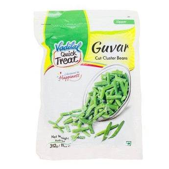 Vadilal Guvar Cut Cluster Beans are cut ready for use in meals or salads.
