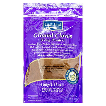 East End Ground Cloves Long Powder (100g). This intensely aromatic spice has a subtly sweet flavour that lends plenty of warmth to any dish. Pairing well with other rich, slightly sweet spices like cinnamon, nutmeg, and allspice, cloves also have a slight note of bitterness and astringency that counterbalances the sweetness.