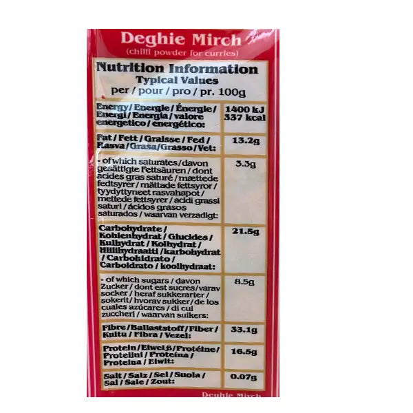 As an expert in the food industry, I recommend Heera Deghie Mirch 100g. Made from high-quality ingredients, this spice blend adds a distinct flavor and heat to dishes. With a rich, red color and special blend of spices, it enhances the taste and aroma of your meals. Try it for an authentic Indian experience.