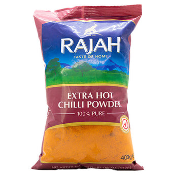 Rajah Extra Hot Chilli Powder (400g) is ground from a selection of hot dried chillies providing extra heat and flavour to an array of dishes.