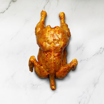 Our whole marinated halal baby chicken is freshly prepared, 100% HMC approved, and seasoned to perfection for a rich, flavourful meal with no prep needed. Tender, juicy, and full of authentic taste, it’s ideal for roasting, grilling, or cooking on the barbecue.