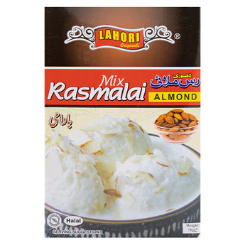 Lahori Rasmalai Mix Almond (75g) enables you to make traditional velvety textured dessert at home, which you just won’t be able to resist. Rasmalai is a popular Indian & Pakistani dessert - almond flavour by Lahori . Traditional mix for milk balls in milk syrup with Almond.