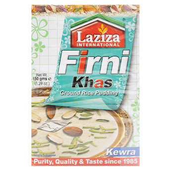Laziza Firni Khas Mix (150g), is a creamy north Indian dessert, delicately flavoured with Kewra and nuts. This milk based dish uses ground rice pudding to provide a textured dessert.
