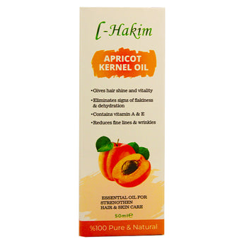 Discover the benefits of Al Hakim Apricot Kernel Oil. Made with 100% natural ingredients, this oil is rich in antioxidants and vitamins, promoting healthy skin and hair. With its light texture and high absorption rate, it's perfect for use as a moisturiser, massage oil, or hair treatment. Try it now in a convenient 50ml size.
