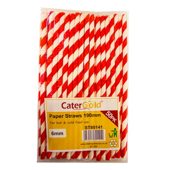 Introducing Cater Gold Paper Straws 190mm 6mm 50pk, the eco-friendly alternative to plastic straws. Made from sturdy paper, these straws are 100% biodegradable and compostable. With a length of 190mm and a diameter of 6mm, they are perfect for any beverage. Make a sustainable choice for your next event or restaurant.