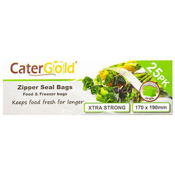Cater Gold Extra Strong Resealable Bags 25pk, keeps food fresh for longer.