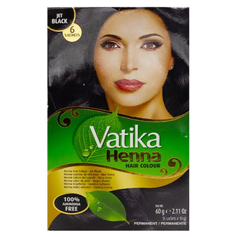 Vatika Henna Jet Black (60g). Get glamorous, natural-looking hair with Vatika's Henna hair colour range. A natural-based solution to colour dye your hair without any worry of damaging it.