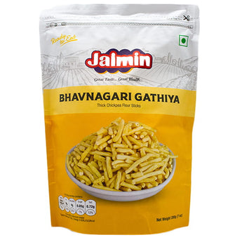 Jaimin Bhavnagari Gathiya (200g) are fried, thick-chickpea flour sticks. Ready to eat right out of the packet, enjoy these sticks during your tea breaks. Simple and enjoyable.