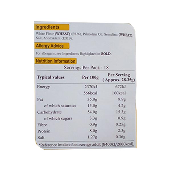 Introducing Jaimin Chat Puri, the perfect accompaniment to your favorite Indian dishes. Made with the finest ingredients, our 500g pack ensures you have plenty to share and enjoy with family and friends. Enjoy the authentic taste and crispy texture of our Jaimin Chat Puri today.