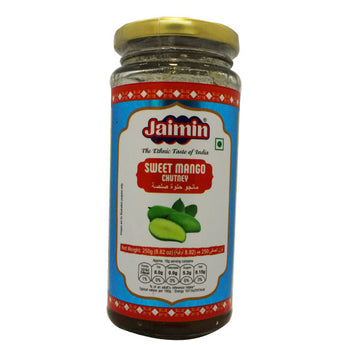 This Jaimin Sweet Mango Chutney is a 250g jar of sweet, tangy, and spicy chutney. Made with real mangoes and a blend of aromatic spices, it is a versatile condiment that can be enjoyed with samosas, curries, sandwiches, or as a dip. Perfect for adding a burst of flavor to any meal.