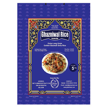 Ghazniwal Extra Long Golden Basmati Sella Rice 5kg offers premium quality grains known for their distinctive aroma and long, slender shape. This parboiled basmati variety retains essential nutrients and delivers a fluffy, non-sticky texture when cooked, making it ideal for biryanis, pilafs, and everyday meals. Its consistent quality ensures excellent cooking performance, providing a reliable choice for both home cooks and professional chefs seeking authentic basmati rice.